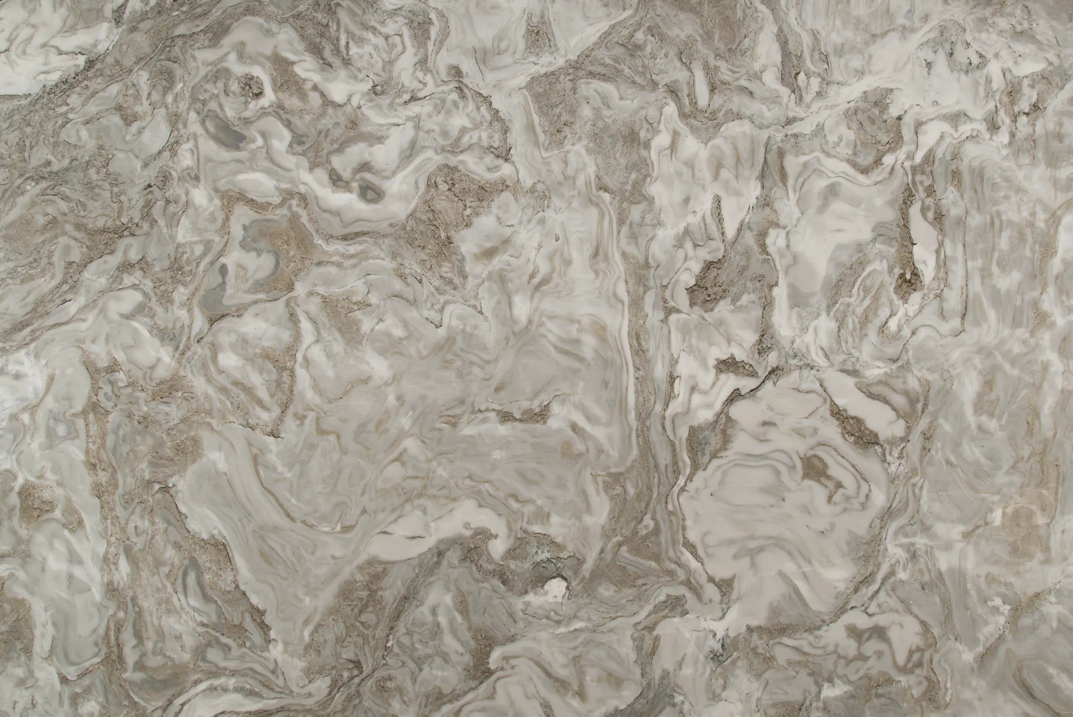 Avalanche White Marble is a dramatic, high-movement dolomite marble featuring a crisp white base with sweeping, bold veins of charcoal, grey, gold, and brown. Known for its durable, scratch-resistant composition. Sealer application included.