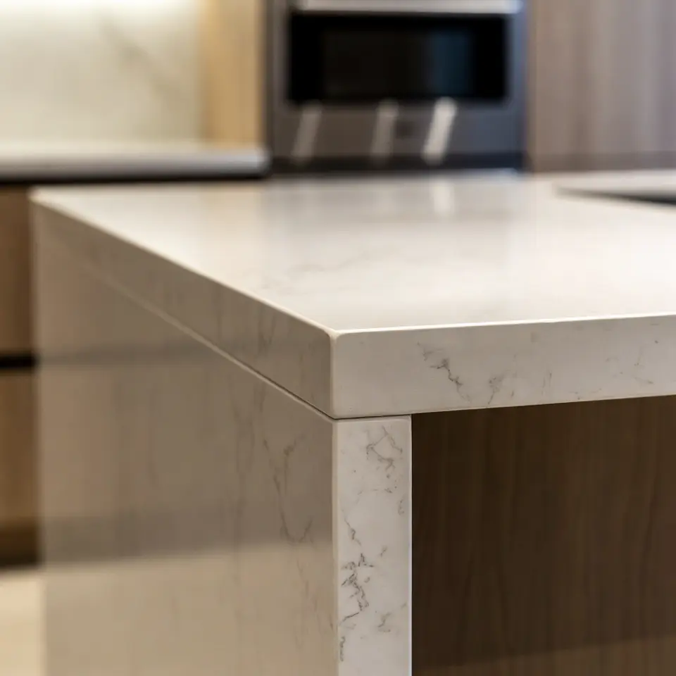 Safety and Comfort: The subtle rounding eliminates the sharp corners of a square edge, making the countertop safer for households, especially those with children. It’s also more comfortable to lean against during use.
