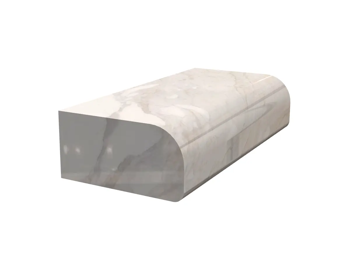 Lower Edge: While the top is soft, the flat bottom edge is still a corner (though less prominent than a straight edge) and may be slightly less forgiving than a Full Bullnose edge in case of impact.
