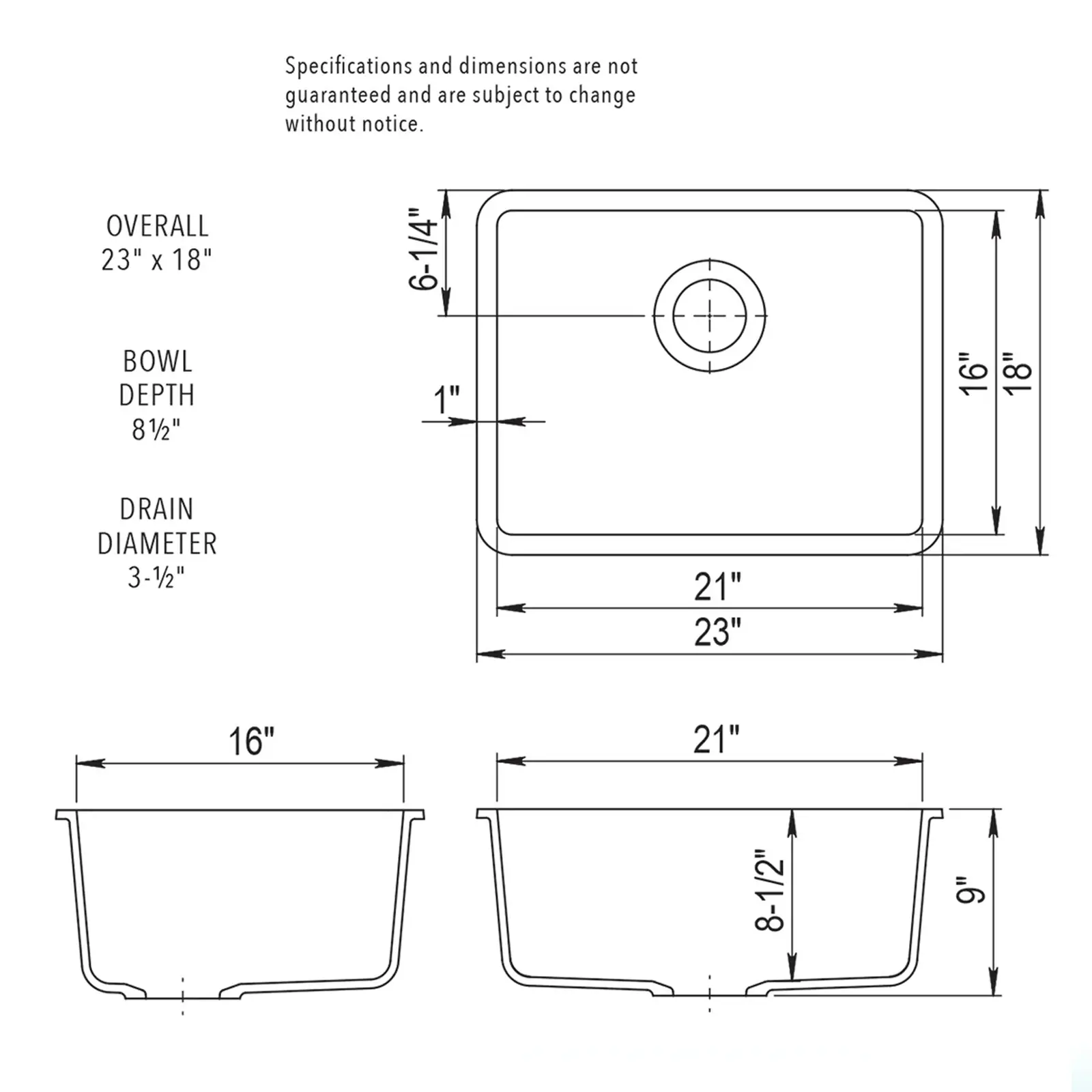 Quartz Composite Single Bowl 2318 Undermount Sink